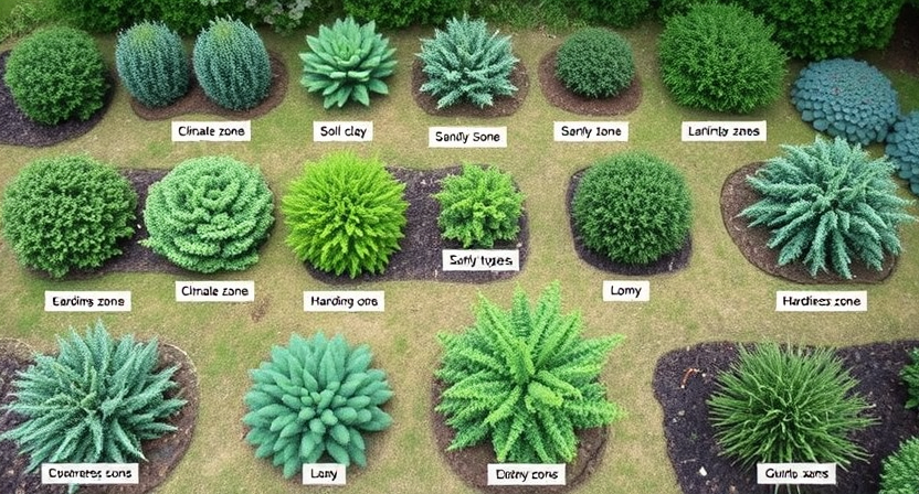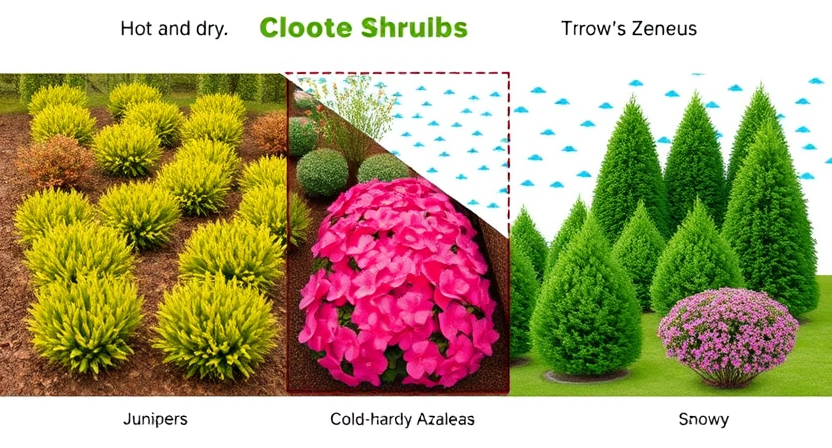 • Opt for drought-tolerant shrubs like juniper for hot and dry regions