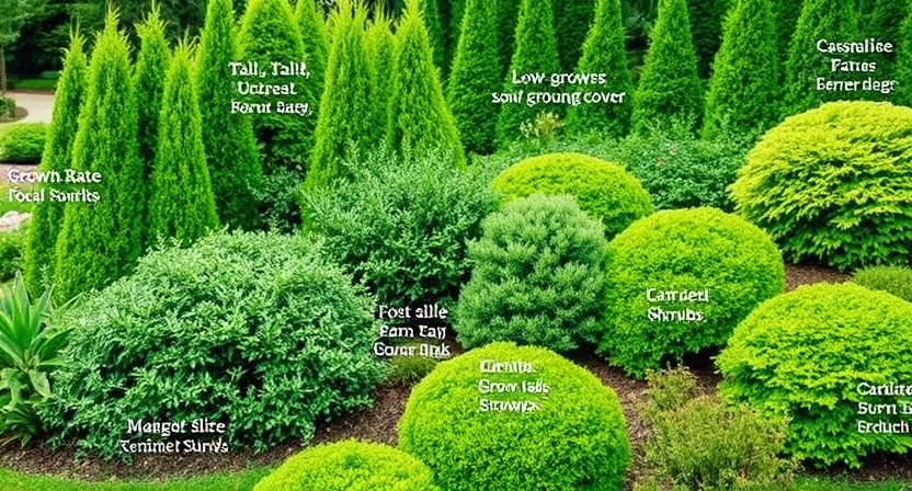 • Choosing evergreen shrubs that fit your desired space and style will create a harmonious and visually appealing garden.