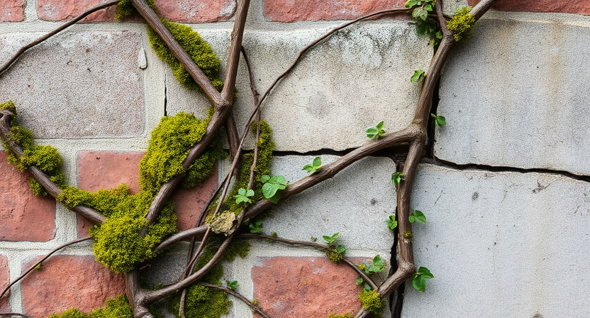 • The roots can widen existing cracks, potentially compromising the structural integrity of the walls.