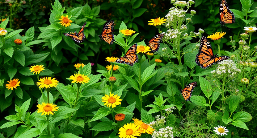• Mexican sunflower (Tithonia diversifolia) is another notable shrub that provides nectar for butterflies and bees.