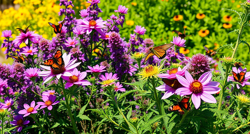 • Butterfly bushes and lantanas thrive in warmer climates, offering a continuous supply of nectar for the pollinators.